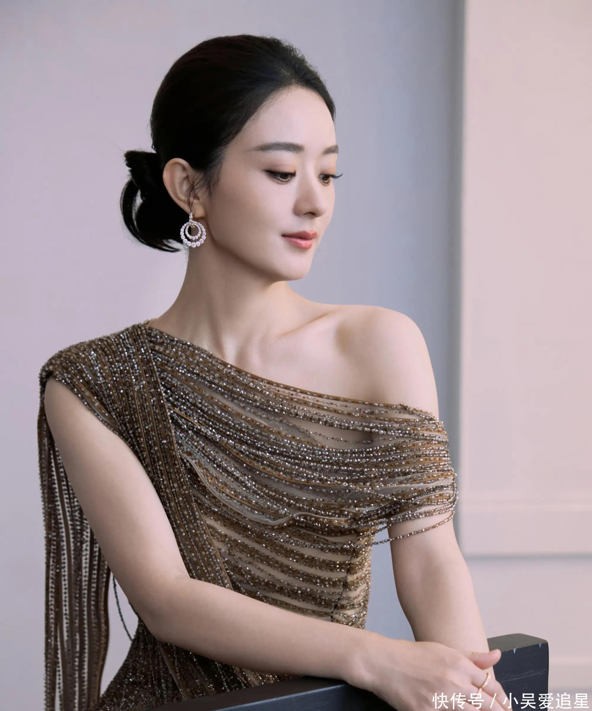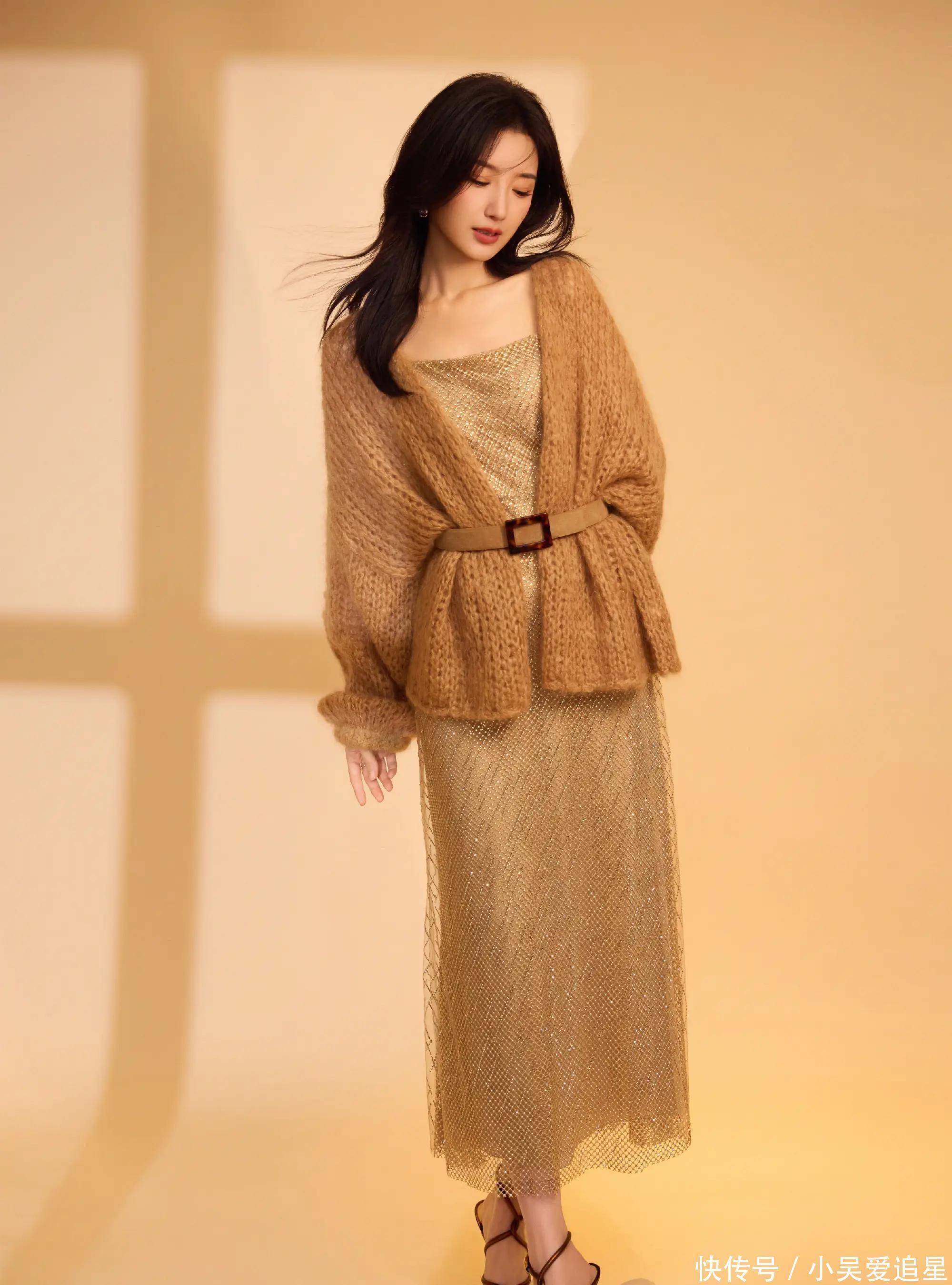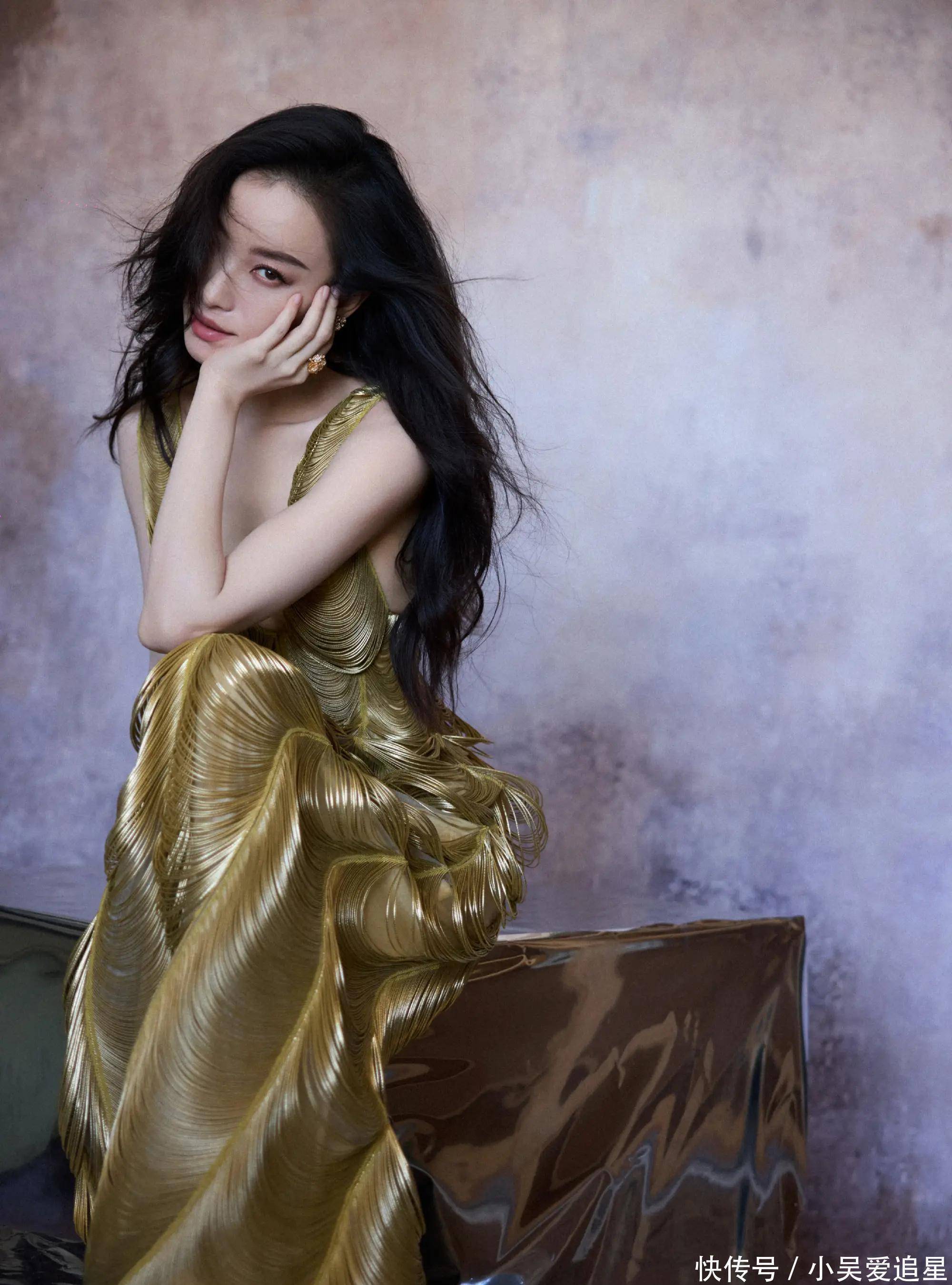可赵丽颖压根不服!她披着银河砂砾裙玩几何美学,金棕链条织成星轨从肩膀绕到脚踝,动静间像把宇宙穿身上了。最绝的是裙子上坠的碎光,暗处看是星河,亮处看是熔金,直接解锁了啥叫“太阳之泪”美学。粉丝哭嚎:“颖宝这造型是从神话里走出来的吧?”