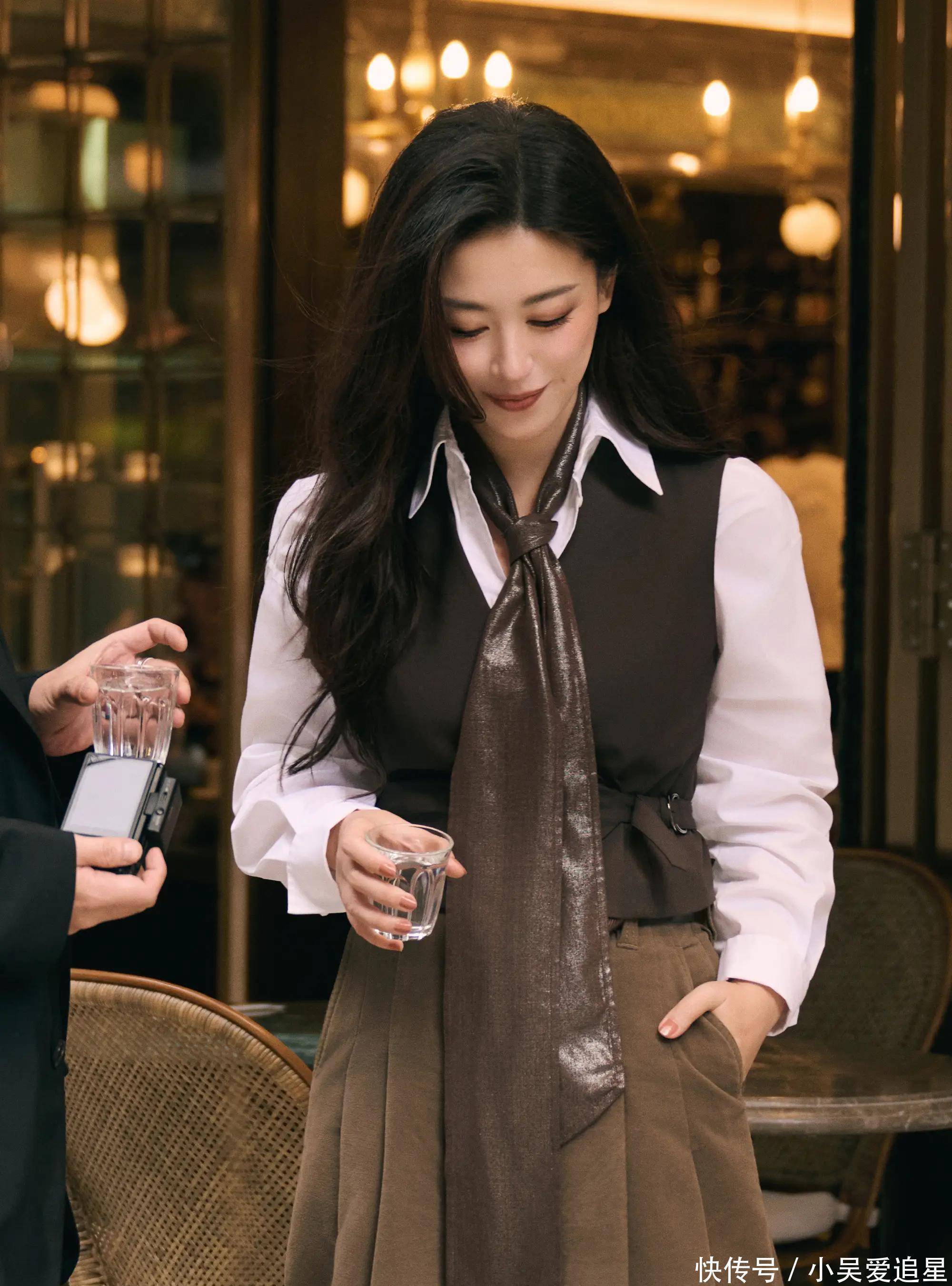 朱珠则把雅痞风玩出花:白衬衫解三颗扣子,皮革围巾改的领带直接模糊性别,插兜叼爵士帽的街拍被做成“职场穿搭模板”。打工人疯狂存图:“学朱珠穿西装,客户骂我都能笑着怼回去!”